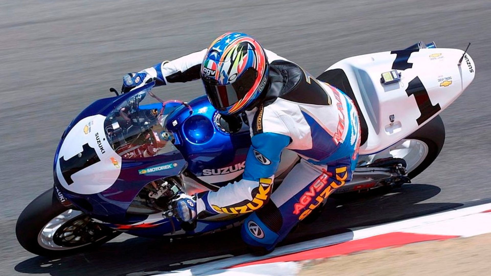 Riding a Yoshimura Suzuki in the AMA Superbike series. He won the title seven times.